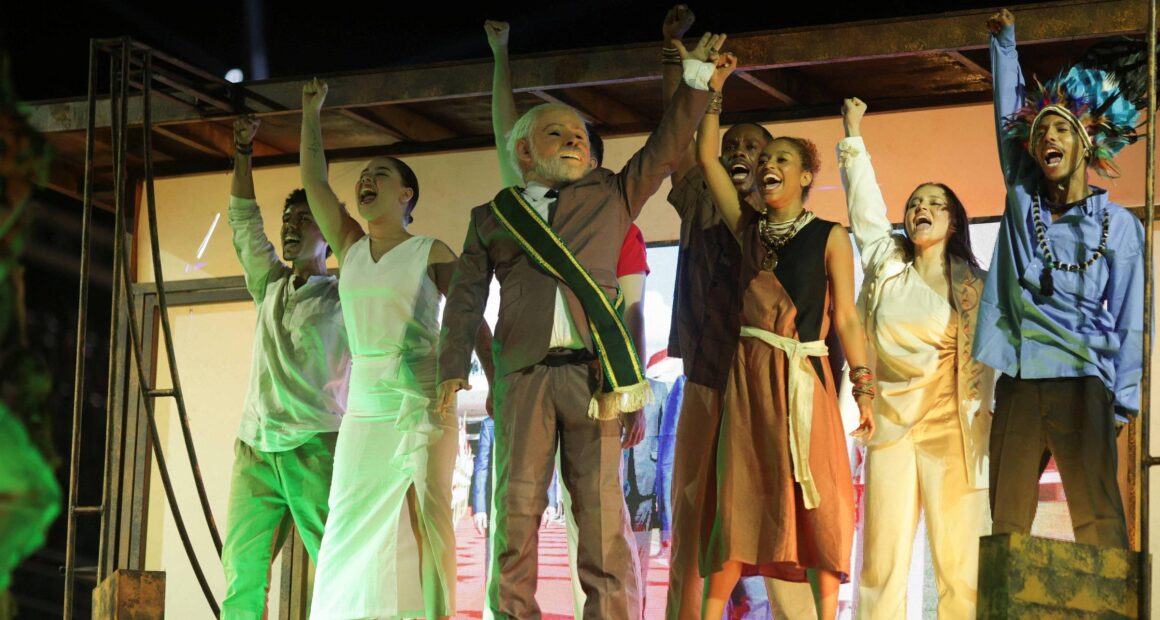 “Não dá para falar da história do Lula, que é um líder político, sem falar de política. Então, obviamente, a gente fala de política, mas a gente não faz campanha política. A gente não está pedindo voto”, disse o enredista da escola, Igor Ricardo, em entrevista à agência Associated Press, durante o desfile.