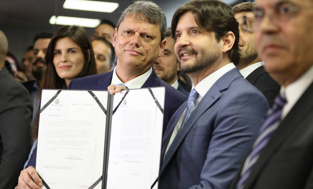 Os deputados estaduais Thiago Auricchio e Alex Madureira, ambos do PL, colhem assinaturas dos seus pares para endossar uma carta que será entregue ao governador Tarcísio de Freitas (Republicanos) defendendo a escolha de André do Prado (PL) como o seu vice na eleição deste ano.
