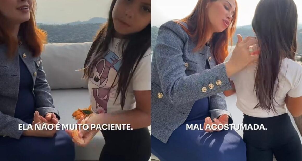 Maíra Cardi, de 41 anos, e a filha Sophia, de 6, protagonizaram uma ‘DR’ sobre paciência. A empresária compartilhou um vídeo em seu Instagram, neste domingo (31), em que dá lições à filha sobre a virtude. Prontamente, a menina chama a mãe de impaciente, e a life coach reage afirmando que a pequena está ‘mal-acostumada’.