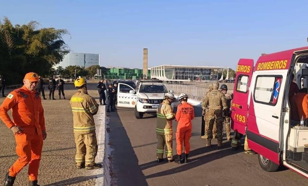 A Polícia Militar do Distrito Federal prendeu um homem que ameaçava explodir uma bomba na manhã deste sábado (30) na praça dos Três Poderes, em Brasília. Segundo o Corpo de Bombeiros, o homem de 45 anos estava em surto psicótico e a polícia não encontrou artefatos explosivos com ele.