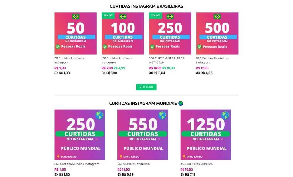 Os preços variam de acordo com o pacote. A vendedora cobra R$ 50 por 50 comentários e R$ 80 por cem. Já a plataforma Fama Express anuncia seguidores, curtidas e visualizações com valores que começam em R$ 2,99. Na Popularos, 20 comentários no TikTok são vendidos a R$ 2,95. Também há opções de pagamento no Pix e cartão de crédito, como em um ecommerce tradicional.