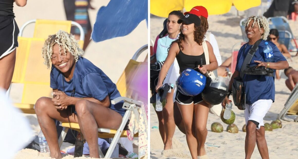 Mart’nália, de 59 anos de idade, foi vista em uma rara aparição pública acompanhada de uma morena enquanto curtia a praia de Ipanema. A cantora aproveitou o dia ensolarado desta quinta-feira (4) para relaxar na areia e, ao perceber que estava sendo fotografada, sorriu para o paparazzo de plantão.