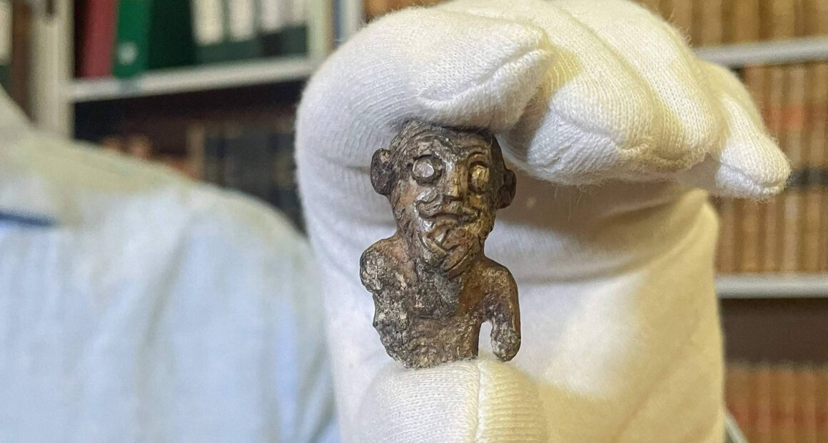 Esculpida em marfim de morsa, a peça parcialmente danificada de uma cabeça e tronco mede somente três centímetros.