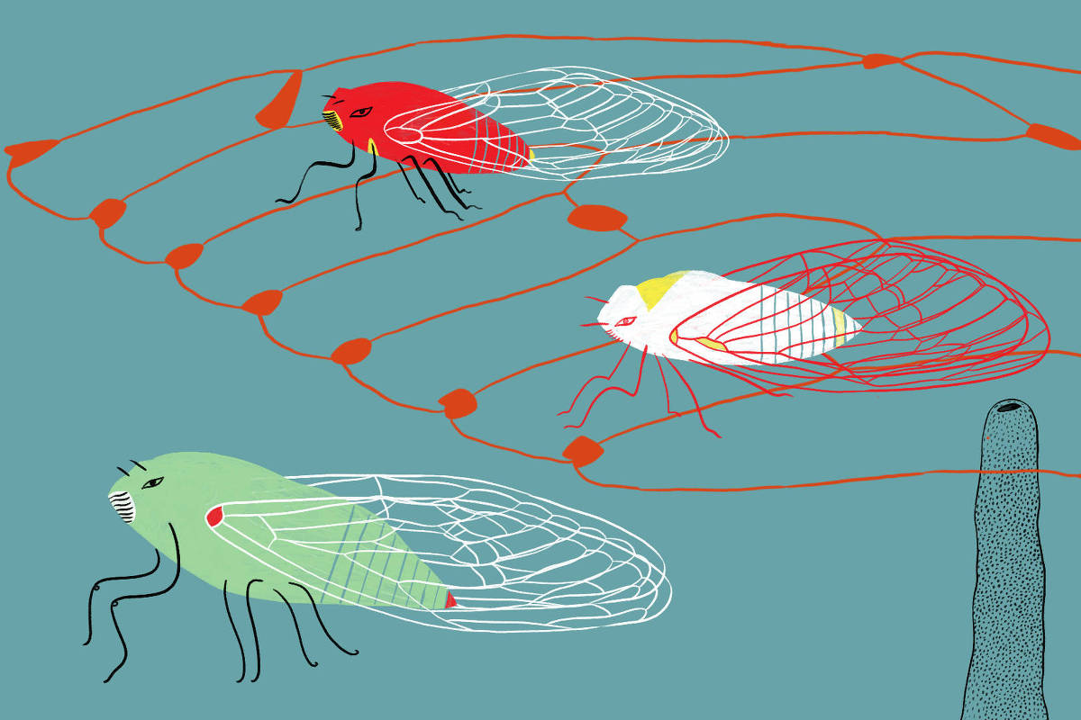 Por isso mesmo, levei um susto na primeira vez que vi essas torres, durante uma trilha exploratória. Estruturas cilíndricas, de formato sugestivo, bem esculpidas e de tamanhos variados. Eram torres feitas por ninfas de cigarras no ano anterior à metamorfose, os professores explicaram, moldadas com argila e excretas. No momento certo, as ninfas abrem a torre, sobem ao topo e ali passam pela transformação.