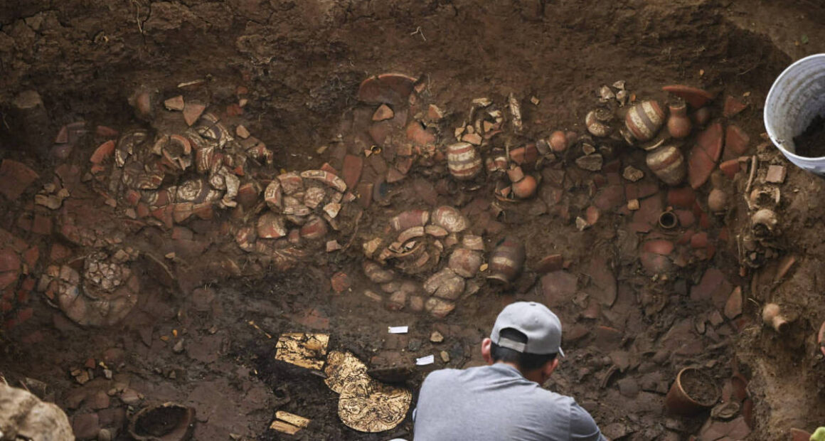 As ossadas estão cercadas de objetos de ouro e peças de cerâmica decoradas com imagens tradicionais, o que indica que corresponderiam a pessoas de “status elevado”, segundo a arqueóloga Julia Mayo.