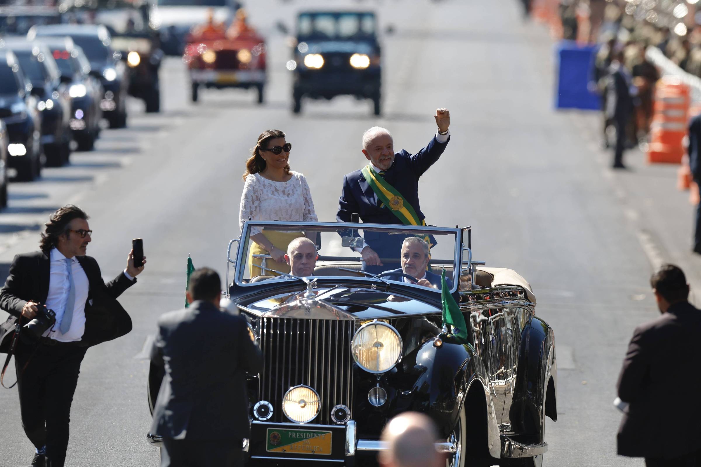 Além de Lula e do vice-presidente, Geraldo Alckmin, também acompanham o desfile o presidente da Câmara, Hugo Motta (Republicanos-PB). Davi Alcolumbre (União-AP), presidente do Senado, não compareceu.